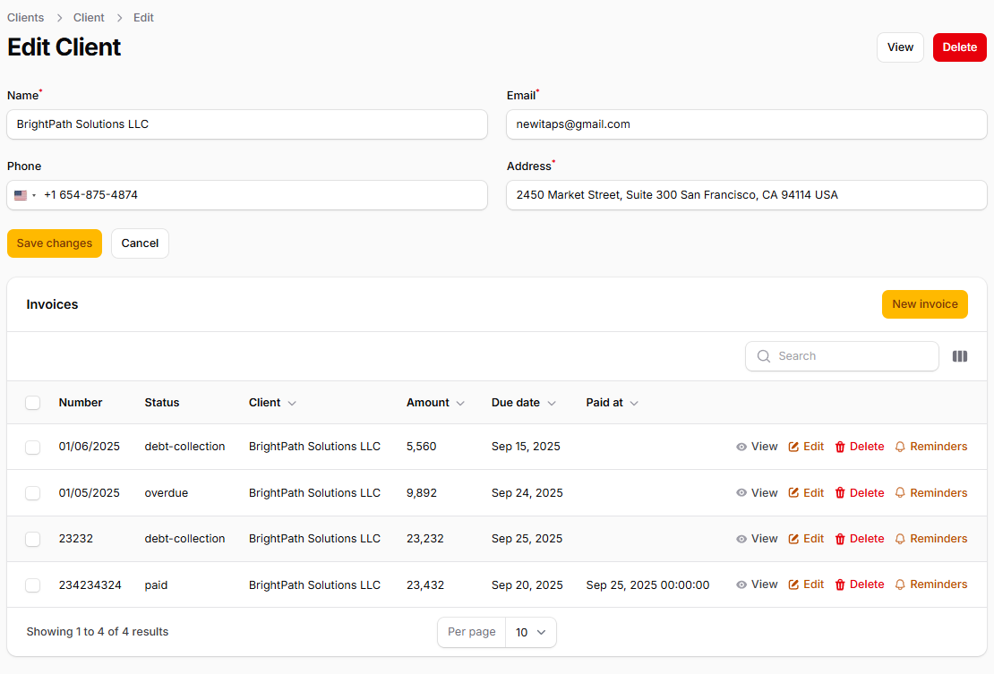 You add your invoices to the platform, and JustPayUp automatically sends professional reminders to your clients at scheduled times. You focus on running your business—we handle the follow-ups.